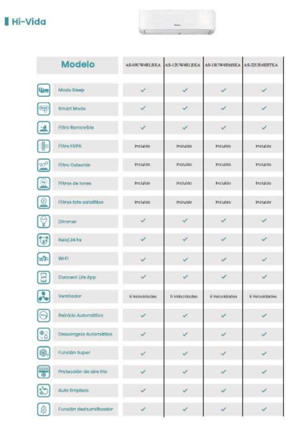 - Modo frío-calor (inversor)